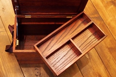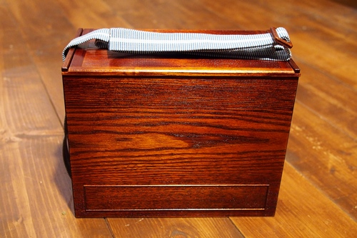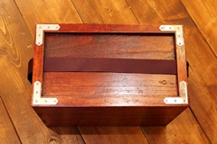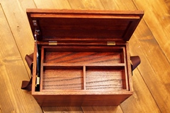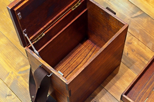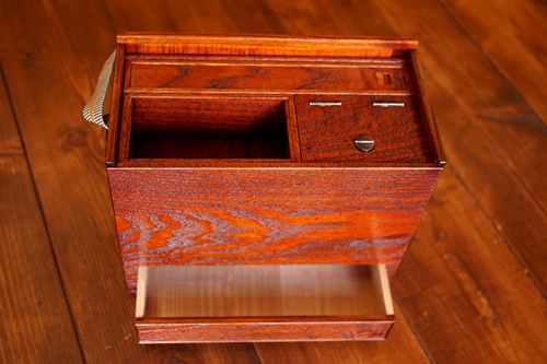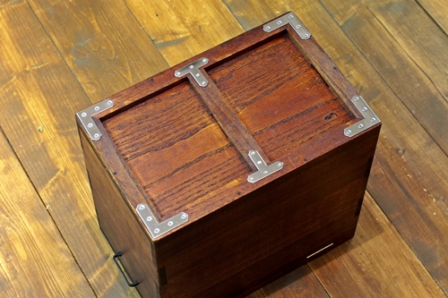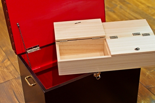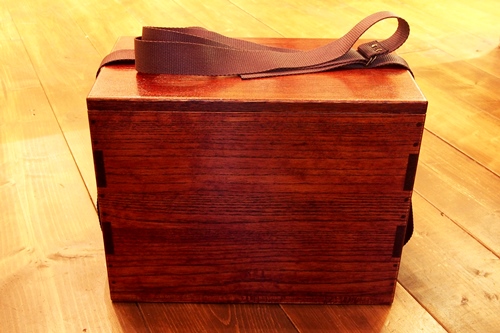 組み継ぎに竹釘で補強を入れた頑丈な仕上げ。本うるし4回塗り仕上げ。小振りで普段使いにぴったりな合切箱です。