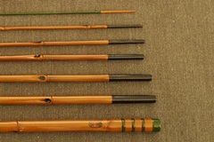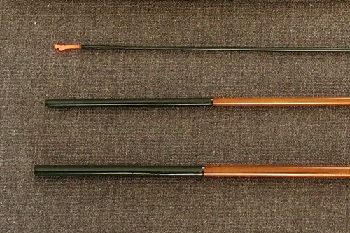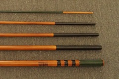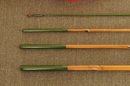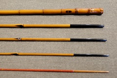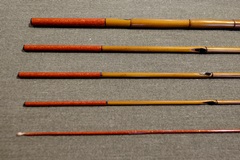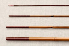 8:2調子、矢竹並継2本仕舞、削り穂、籐巻握り |