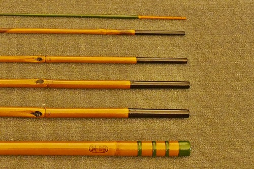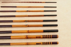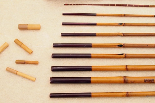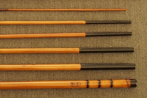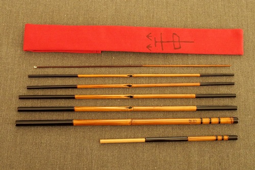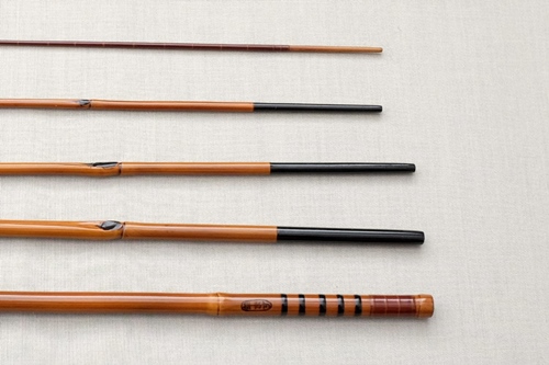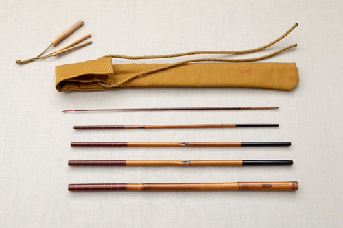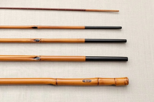 7:3調子、矢竹並継2本仕舞、削り穂、竿尻に象牙付 |