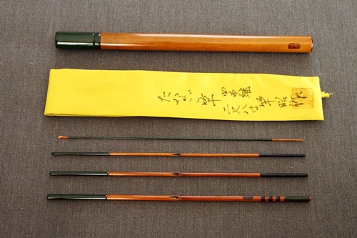 7:3調子、矢竹並継3本仕舞、削り穂、竿筒付 |