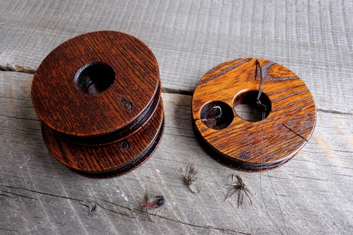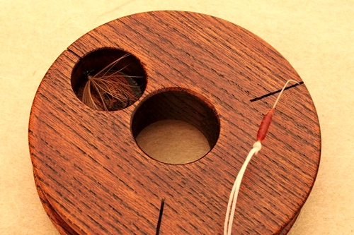 木目の美しいけやきを拭き漆で仕上げました。毛鉤を結んだまま仕掛けを収納できる便利なアイテムです。